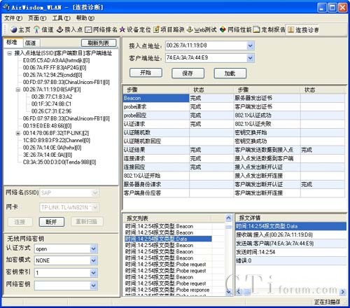 Airwisdom_Wlan測試軟件通過AirPcap捕獲并分析802.11 a/b/g/n的控制幀、管理幀和數(shù)據幀,從而得到WLAN網絡業(yè)務和網絡運行質量的各類參數(shù)。