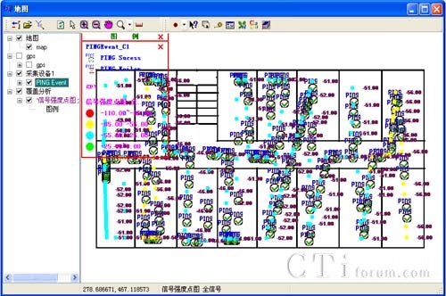 可以顯示GPS軌跡圖上的信號強度,載干比等參數(shù)覆蓋點圖及效果圖。