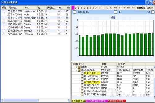支持設備被動狀態(tài)下掃描802.11a/b/g/n所有信道,也可選擇信道進行掃描。統(tǒng)計匯總AP、STA、AdHoc等設備的數(shù)量,統(tǒng)計網絡中SSID網絡數(shù)量,能提供信道的信號強度、噪聲、信噪比、干擾參數(shù)指標等信息。