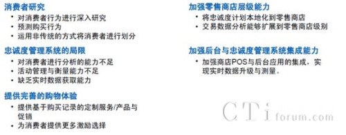 基于微軟Dynamics CRM,HCL結(jié)合其在消費(fèi)行業(yè)15年的忠誠(chéng)度管理專(zhuān)業(yè)知識(shí),歷時(shí)兩年開(kāi)發(fā)零售行業(yè)客戶(hù)關(guān)系管理解決方案EmpoweRetail。EmpoweRetail將CRM、忠誠(chéng)度管理和消費(fèi)者分析相結(jié)合,最大限度地提升用戶(hù)對(duì)客戶(hù)生命周期的管理能力,幫助用戶(hù)提升業(yè)務(wù)收益。EmpoweRetail的應(yīng)用框架具有高度可擴(kuò)展性,它的數(shù)據(jù)分析能夠支持對(duì)時(shí)間、客戶(hù)群、店鋪、產(chǎn)品等多維度的層次分析,支持與POS/店鋪系統(tǒng)的實(shí)時(shí)網(wǎng)絡(luò)數(shù)據(jù)交換。CTI論壇編輯