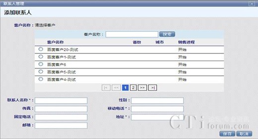 聯(lián)系人管理與客戶管理操作方法大致相同,功能相當于客戶管理下客戶資料內(nèi)的添加聯(lián)系人功能。您可以按客戶名稱為搜索條件選擇所要添加聯(lián)系人的目標客戶。