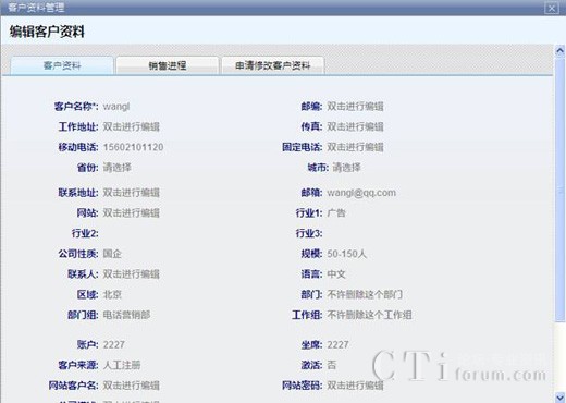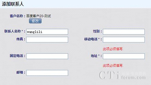 對新添加的客戶錄入客戶信息資料,包括客戶的名稱、郵箱等,為其建立起一個新的客戶關系,可以隨時找到該客戶的具體信息以及他的銷售情況,方便對客戶銷售進程有一個充分地實時跟蹤,并為之更好地服務。