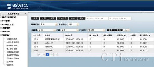 asterCC自動生成的各種數(shù)據(jù)報表,讓您能很快的從成千上萬的通話中分析到關鍵的信息。這樣銷售業(yè)績及客服質(zhì)量的情況便清晰可見。根據(jù)豐富的數(shù)據(jù)報表,給決策者做戰(zhàn)略性市場定位提供有力的數(shù)據(jù)參考,對業(yè)務的開展也起到了促進作用,同時也便于進行員工的績效考核。