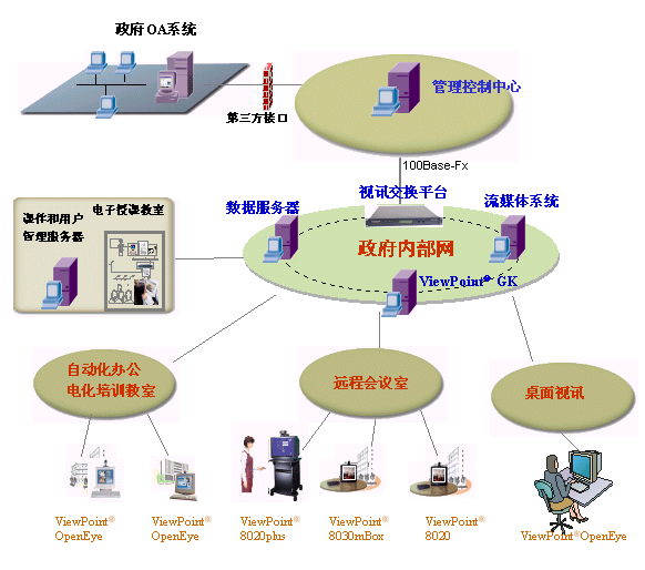 “視點(diǎn)通”ViewPoint®8000綜合視訊系統(tǒng)可以滿足不同領(lǐng)域用戶的多種視訊業(yè)務(wù)需求:遠(yuǎn)程教學(xué)、異地會(huì)商、遠(yuǎn)程醫(yī)療、應(yīng)急通信、軍事會(huì)議、遠(yuǎn)程監(jiān)控、遠(yuǎn)程調(diào)度、會(huì)議出租、家庭應(yīng)用等。