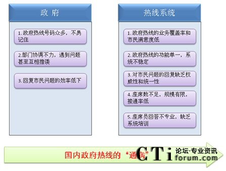 深圳市原有政府熱線所反映的問題并非孤立,由于時代和技術(shù)的局限性,國內(nèi)其它的一些政府熱線也同樣面臨著諸多問題,具體如下: