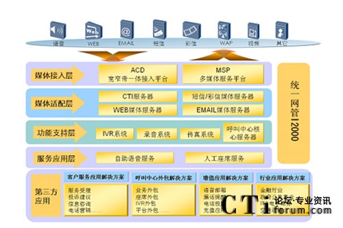 華為多媒體聯絡中心系統不僅支持普通語音呼叫的接入,還支持Email、Fax、短信、視頻等多種媒體呼叫接入,以及通過Web方式發(fā)起的護航瀏覽、點擊通話、文字交談等呼叫的接入,以語音、文字、圖像等多種媒體的組合為客戶提供多通道的服務。用戶可以同時通過語音、圖像、文字多種形式與聯絡中心的業(yè)務代表進行交互,極大的拓寬了用戶與業(yè)務代表之間信息交互的空間,提高了信息交互的效率。