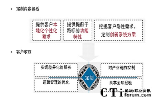 可定制服務主要體現在三個層面,一個是定制化服務,通過全國10多個本地定制開發(fā)中心對客戶提供貼身二次開發(fā)服務,支撐客戶更精細運營其客服系統,另一個是定制化路標,定制化創(chuàng)新系統方案,即通過華為MKT、行銷、開發(fā)部門對客戶價值需求的深度分析,將客戶需求去粗存精、去偽存真、由表及里、由此及彼“定制提煉”出來,成為我們產品和方案的路標。