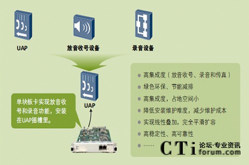 華為多媒體聯(lián)絡中心解決方案標準版采用的是基于華為NGN架構(gòu)的下一代多媒體接入設備UAP2100,寬窄帶一體化設計,可以接入PSTN/PLMN、NGN/3G和IP網(wǎng)絡,核心交換基于SIP技術(shù),完全適應聯(lián)絡中心技術(shù)發(fā)展的中長期趨勢,一步到位,步步領(lǐng)先,完全滿足您對聯(lián)絡中心升級換代的中長期需求,保護您的寶貴投資。