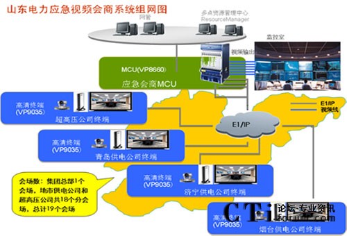 山東電力集團公司為了開展應(yīng)急視頻會商業(yè)務(wù),需建設(shè)一套覆蓋集團總部、地市供電公司、超高壓公司等19個單位的視訊系統(tǒng),并能夠與國家電網(wǎng)、地市供電公司已有系統(tǒng)實現(xiàn)音、視頻的互通。