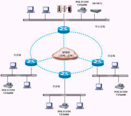 "1+6" | 適用于8個會場點以內(nèi)的應(yīng)用 | 6臺POLYCOM VSX6000視頻終端 1臺 "SD 1608" MCU |