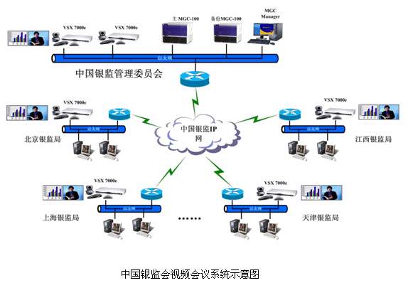 中國銀監(jiān)會目前已經(jīng)擁有一個高速、高可靠性的ATM骨干傳輸網(wǎng)絡(luò),網(wǎng)絡(luò)采用星形結(jié)構(gòu),各分支機構(gòu)到北京總部的線路均為2條15M ATM線路,這種優(yōu)良的網(wǎng)絡(luò)非常適合視頻會議業(yè)務(wù)的運營。視頻會議網(wǎng)建立完成后可以實現(xiàn)通過遠程視頻會議,遠程處理重點銀行業(yè)金融機構(gòu)監(jiān)事會的日常管理工作;遠程審查銀行業(yè)金融機構(gòu)高級管理人員任職資格;遠程討論協(xié)商制定有關(guān)銀行業(yè)金融機構(gòu)監(jiān)管的規(guī)章制度和辦法;遠程對銀行業(yè)金融機構(gòu)實監(jiān)管,依法對違法違規(guī)行為進行查處;更加可以通過遠程雙流會議,按照國家有關(guān)規(guī)定,遠程公布全國銀行數(shù)據(jù)、報表。