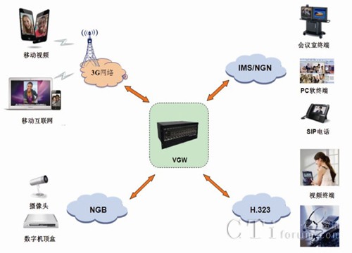 艾諾通信 NetFidelityTM系列視頻網(wǎng)關(guān)VGW應(yīng)用于3G、IMS、NGB等異構(gòu)網(wǎng)絡(luò)之間,提供信令互通和音視頻媒體轉(zhuǎn)換功能,實(shí)現(xiàn)移動終端、PC終端以及機(jī)頂盒“三屏”融合應(yīng)用。