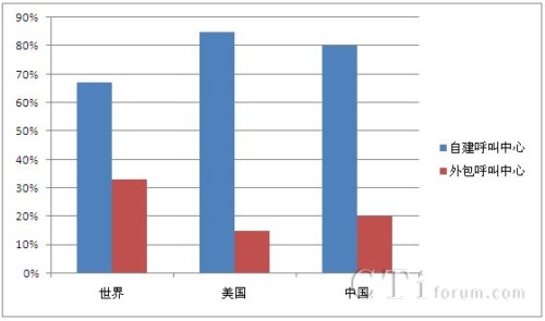 從圖中可以看出,中國(guó)的呼叫中心模式發(fā)展比例與世界,甚至與美國(guó)相比并沒(méi)多大的差別。