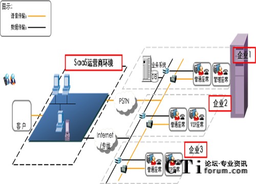 運營商云呼叫中心又可以稱為托管式呼叫中心,是指用戶并不購買呼叫中心設(shè)備,而是從呼叫中心托管運營商處租用呼叫中心設(shè)備,這種租用就像給電信運營商交月租一樣,實際呼叫中心設(shè)備仍然在托管商機房中,托管商給用戶開幾個分機號碼,用戶通過互聯(lián)網(wǎng)進行登錄和通話。目前國內(nèi)上海電信已經(jīng)推出了類似的平臺并在大力推廣。