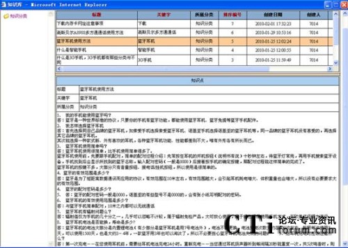 知識庫可以由企業(yè)相關(guān)人員自行設(shè)定、更新最新的產(chǎn)品知識、市場信息和競爭產(chǎn)品比較等信息。強(qiáng)大的搜索功能也使得查詢更加便利。如當(dāng)客戶提出某問題使得服務(wù)人員無法立即回答時(shí),系統(tǒng)還提供相應(yīng)的填寫欄目以便及時(shí)發(fā)送至主管,請求幫助。而當(dāng)主管對此問題進(jìn)行回復(fù)后,可以選擇將此問題自動(dòng)放入知識庫,以便同其他人員分享。系統(tǒng)可以根據(jù)問題的點(diǎn)擊率將最感興趣的問題排列在最前,并可以匯總出一定時(shí)間內(nèi)最感興趣的問題及產(chǎn)品,作為企業(yè)對服務(wù)人員今后培訓(xùn)的重點(diǎn)。同時(shí),系統(tǒng)將自動(dòng)記錄每一位客戶的咨詢記錄,及時(shí)更新并在客戶再次致電時(shí),顯示在客戶資料當(dāng)中。