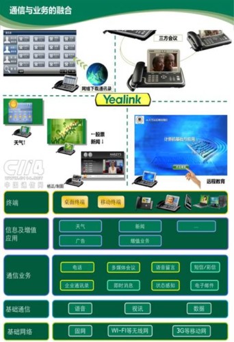 億聯(lián)專注于VoIP領域的發(fā)展,見證了整個終端發(fā)展過程:從由傳統(tǒng)的模擬/數(shù)字電話、IP語音電話、IP視頻話機,到多媒體信息終端階段。每前進一步,都擁有上一步的所有功能,并再延伸出更核心的應用。
