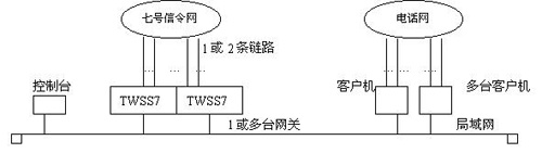 操作系統(tǒng)可以是SCOUNIX ,Windows95/NT。網(wǎng)傳通訊協(xié)議TCP/IP。不同的客戶機可以運行不同的應(yīng)用軟件。七號控制臺用于網(wǎng)關(guān)維護和鏈路管理、參數(shù)設(shè)置等,運行于單獨機器或某臺客戶機上。在簡單的應(yīng)用中,控制臺也可以省略。