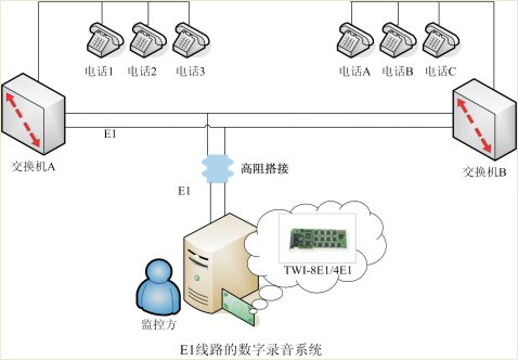 采用對(duì)E1線路的錄音方案時(shí)候,如果中斷數(shù)量比較多,可以適當(dāng)增加DXC數(shù)字交叉設(shè)備,減少E1中斷數(shù)量,從而達(dá)。