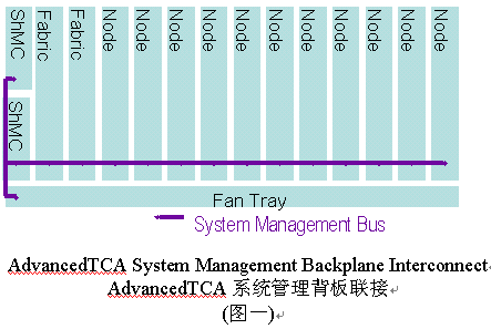 管理系統(tǒng)的信息傳輸和IPMI(智能平臺(tái)管理接口)指令集被用作對(duì)ATCA框架的管理,包括對(duì)電源的管理、電子鑰匙和機(jī)架內(nèi)溫度的監(jiān)控。系統(tǒng)管理是通過(guò)機(jī)框管理控制器(ShMC)執(zhí)行的。機(jī)框管理控制器(ShMC)負(fù)責(zé)完成對(duì)ACTA系統(tǒng)中的現(xiàn)場(chǎng)置換單元(Field