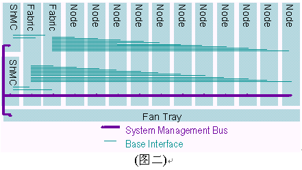 I2C總線使用100Khz時(shí)鐘和3.3V信號(hào)。ATCA規(guī)范制定要求2個(gè)IPMB總線,分別冠以IPMB-A和IPMB-B,兩條總線合一稱(chēng)之為IPMB-0。IPMB可以以雙總線或雙星型配置方式實(shí)現(xiàn)。之所以要求雙IPMB總線是為了保證系統(tǒng)管理子系統(tǒng)的可靠性。IPMB總線被用作聯(lián)接ShMC與ATCA單板和ATCA機(jī)架中FRUs的橋梁。雙IPMB總線可同時(shí)被使用以加倍傳輸頻寬,但設(shè)計(jì)者必須考慮萬(wàn)一其中一條IPMB總線失靈所帶來(lái)的沖擊。典型的ATCA背板上系統(tǒng)管理間的互聯(lián)如下圖所示,在背板上有兩個(gè)ShMC槽位,兩個(gè)交換槽位,11個(gè)節(jié)點(diǎn)槽位和1個(gè)風(fēng)扇的連接。值得說(shuō)明的是管理總線與所有的節(jié)點(diǎn)槽、交換槽通過(guò)一對(duì)雙備援的ShMC聯(lián)接。