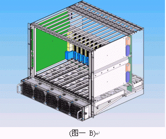 我們可以看到當(dāng)今市面上已有相關(guān)的零件商或系統(tǒng)商開(kāi)發(fā)出14U或13U,12U的ATCA機(jī)箱。就ATCA機(jī)箱的型式來(lái)說(shuō)可以分為直立型插卡與橫向型插卡兩種類型。直立式插卡機(jī)箱的標(biāo)準(zhǔn)為14槽(參考圖一B),而橫向型機(jī)箱因受限于機(jī)箱高度,所以視其高度決定槽數(shù)的多少。 ATCA的架構(gòu)主要包括以下部分:正面插槽,RTM,PEM,背板,CMMs,散熱系統(tǒng)。(參考圖一與圖二)