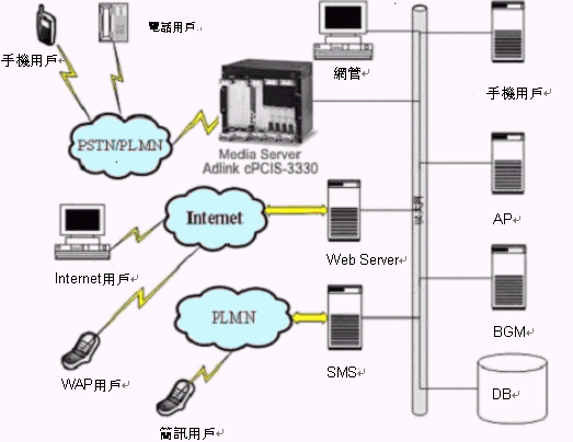Media Server 服務(wù)器使用凌華科技自行研發(fā)的 cPCIS-3330 平臺來搭配刀鋒型 cPCI-6840 (P4/PM等級), cPCI-6780