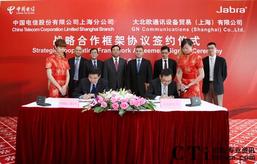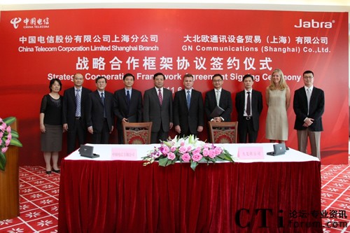 CTI論壇(ctiforum)6月23日消息(記者 楊佳林):上海—全球領(lǐng)先的創(chuàng)新耳麥解決方案提供商大北歐公司(GN Netcom)與中國電信上海公司(以下簡稱上海電信)今日隆重舉辦了 “戰(zhàn)略合作框架協(xié)議簽約儀式”。上海電信資深經(jīng)理花銳強(qiáng)、大北歐公司亞太區(qū)總裁Mark Leigh,及雙方公司高層領(lǐng)導(dǎo)共同出席了此次慶典。Mark Leigh先生還代表了大北歐公司將Edouard Suenson先生——“將電報(bào)引入中國的丹麥人”的雕像捐贈(zèng)給上海電信博物館,見證了中國與丹麥源于19世紀(jì)末在通信方面的成功合作。