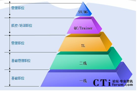 以上是一個(gè)比較簡(jiǎn)單且清晰的呼叫中心員工職位晉升路線,僅僅展現(xiàn)給員工一幅這樣的圖畫是遠(yuǎn)遠(yuǎn)不夠的,還必須明確符合各級(jí)職位的要求和標(biāo)準(zhǔn),建立起公開透明的晉升機(jī)制,幫助并帶領(lǐng)員工實(shí)現(xiàn)職位方面的晉升。