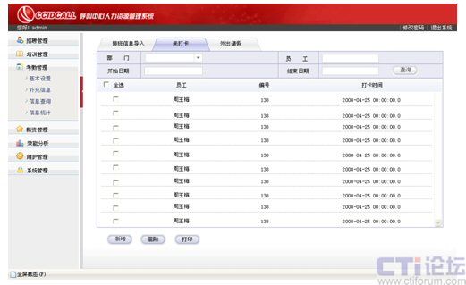 利用統(tǒng)計部分的四項內容實現(xiàn)對座席從招聘前、招聘中和招聘后的全面管理,通過培訓使座席擁有工作必備的知識、技能和能力,培養(yǎng)他們對企業(yè)的認同感、歸屬感,同時,利用詳盡的考勤管理最大限度、公平合理地滿足座席內在報酬和外在報酬上的期望和需要。