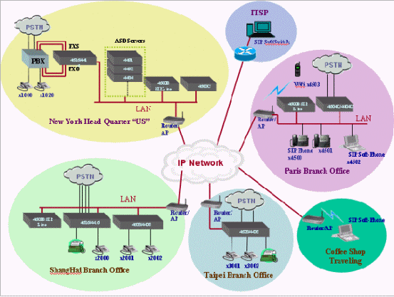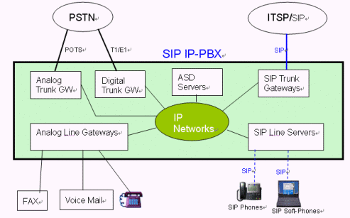 MOSA的SIP IP-PBX是一個(gè)完整的商用交換機(jī)系統(tǒng),能提供企業(yè)完整的通信服務(wù),因應(yīng)各種不同接口的連結(jié)需求,例如公眾電信系統(tǒng)(PSTN)、SIP服務(wù)商、傳真機(jī)、電話機(jī)、語(yǔ)音信箱、SIP IP Phone、SIP Soft-phone、Wifi-Phone以及各種SIP終端設(shè)備等等,MOSA的SIP IP-PBX提供模塊化的接口連接設(shè)備,每一種接口連接設(shè)備均配備有以太網(wǎng)絡(luò)接口,可以透過(guò)IP網(wǎng)絡(luò)相互連結(jié),使得各分公司之間通信零距離。MOSA SIP IP-PBX除了解決基本的接口連接外,也提供各式各樣的應(yīng)用服務(wù)服務(wù)器(Application Service Devices),增進(jìn)整體系統(tǒng)的功能,譬如:網(wǎng)絡(luò)型電話會(huì)議,網(wǎng)絡(luò)型廣播,移動(dòng)辦公功能等。