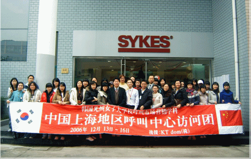 2006年12月14日上午,韓國光州女子大學呼叫市場營銷系30多名大學學生 在鄭成教授等的帶領下,專程來滬參觀訪問賽科斯(Sykes)公司。韓國光州女子大學是韓國第一個設立呼叫市場營銷專業(yè)的大學,該專業(yè)為四年制本科,學生畢業(yè)后主要從事客戶服務行業(yè)的基層管理崗位工作。領隊來訪的韓國光州女子大學的鄭成教授表示“此次對賽科斯的訪問非常有意義,希望今后能和賽科斯就呼叫中心各方面的問題有更多的交流與合作機會。”
