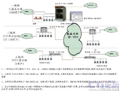 多個用戶,覆蓋1 個總公司、41 個分公司和352 個營業(yè)部。在設計組網(wǎng)方案時,阿爾卡特朗訊根據(jù)用戶的需求和實際情況,并充分考慮現(xiàn)有的數(shù)據(jù)網(wǎng)絡資源,提出采用星狀網(wǎng)絡組網(wǎng)結(jié)構建設PBX