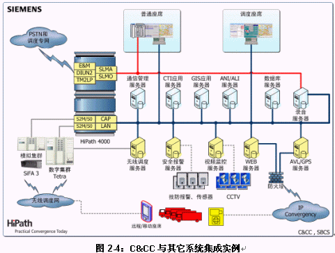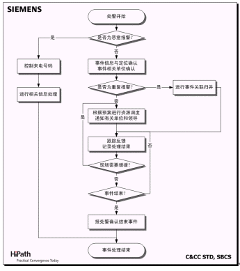 C&CC是西門子指揮控制中心全面解決方案的核心。C&CC以有線(HiPath 4000)/無線(模擬和數(shù)字集群)通訊平臺為信息采集和資源調(diào)度基礎(chǔ),系統(tǒng)核心模塊包括:融合多種業(yè)務(wù)的接處警工作流,面向地理信息對象的資源管理,面向事件的案情與錄音管理,基于預(yù)案的輔助決策支持,以及多種統(tǒng)計、查詢和報表生成工具等。在此基礎(chǔ)上,C&CC還提供豐富的接口,確保與技防報警、圖像/視頻監(jiān)控和GPS