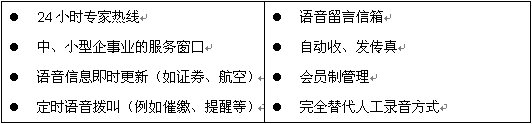 將以往的單位的人工熱線電話轉(zhuǎn)換為計算機24小時自動熱線。有效解決服務(wù)態(tài)度、服務(wù)質(zhì)量等敏感問題。咨詢來電只須象以往撥打熱線電話,計算機中的語音卡就會自動接通,完成95%以上的人工服務(wù)任務(wù),用戶就可以通過電話這種最簡單、最易用的方式快速獲取信息。