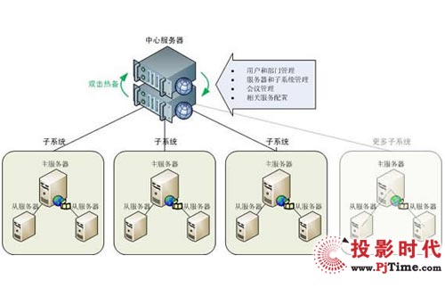 用戶(hù)、會(huì)議、服務(wù)器的管理工作都放在中心服務(wù)器來(lái)進(jìn)行,將會(huì)議功能和管理功能分離。用戶(hù)的登錄會(huì)議、管理系統(tǒng)只要訪(fǎng)問(wèn)一個(gè)中心服務(wù)器即可,簡(jiǎn)化了用戶(hù)操作,并降低系統(tǒng)風(fēng)險(xiǎn)。