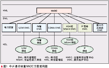 中興通訊提出的NNOC主要由綜合網(wǎng)管系統(tǒng)(UNMS)、資源管理系統(tǒng)(RMS)和業(yè)務管理系統(tǒng)(SMS)組成,用于為埃塞電信提供統(tǒng)一網(wǎng)管、快速和直觀的故障檢測和定位、實時性能監(jiān)控和方便的業(yè)務部署和監(jiān)控等諸多功能。