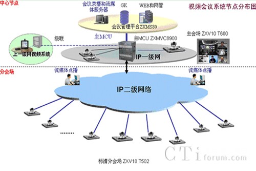 為此,中興通訊選擇了ZXMVC8900基于電信級交換機架構(gòu)的MCU,而會場終端根據(jù)樂山地稅局的要求,我們分別采用ZXV10 T600 高清視頻終端,ZXV10 T502標清終端。全兼容智能視訊服務(wù)器ZXMVC8900采用電信交換機架構(gòu)設(shè)計,全面支持ITU-T H.323、H.320協(xié)議,可通過不同網(wǎng)絡(luò)(IP、ISDN、DDN、SDH、ATM、衛(wèi)星等)接入用戶終端,并組織召開視頻會議,具有全兼容各種網(wǎng)絡(luò)、支持DVD級高清會議、支持H.264編解碼協(xié)議、H.460防火墻穿越、H.235加密、H.239雙視頻流、T.140短消息橫幅、終端主叫呼集等先進技術(shù),最高支持8M帶寬和4CIF圖像分辨率,為用戶提供DVD級的高清晰會議體驗。采用單插板設(shè)計,在將來需求增加的時候可以通過增加板卡最大擴展至192路,充分保護用戶投資。ZXV10 T600是中興通訊推出的新一代分體式雙模高清視頻會議終端,支持1080P,720P高清編解碼和8M會議帶寬;支持H.320和H.323雙協(xié)議、藍牙技術(shù)、H.460防火墻穿越、H.235加密、H.239雙視頻流、T.140短消息橫幅、終端主叫呼集等最新技術(shù)。