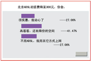 2002年12月,中國網(wǎng)通北京通信公司發(fā)起了一次降價活動,先是將原定今年12月20日到期的512k ADSL上網(wǎng)費的半價優(yōu)惠向后延續(xù)半年期限,緊接著,ADSL初裝費從最初的1300元降至300元,降幅達千元,動作之大、降幅之高,令業(yè)界嘩然。不難發(fā)現(xiàn),DSL不僅要延續(xù)原有的市場分額,還要搶占Cable Modem與以太網(wǎng)的半壁江山