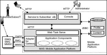 ·移動(dòng)應(yīng)用系統(tǒng)(MAS)。幾乎所有的移動(dòng)應(yīng)用都由MAS完成。MAS最主要的接口是與不同移動(dòng)運(yùn)營(yíng)商網(wǎng)關(guān)的連接,被定義為網(wǎng)關(guān)適配器(Adapter