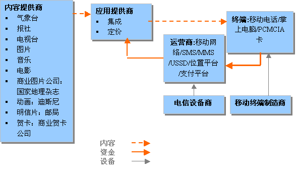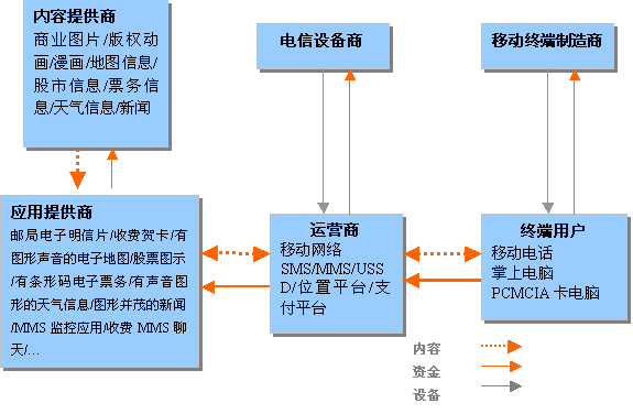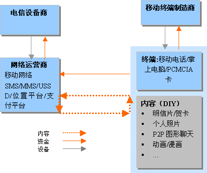 MMS業(yè)務(wù)產(chǎn)業(yè)價(jià)值鏈的主要環(huán)節(jié)包括網(wǎng)絡(luò)運(yùn)營(yíng)商,終端,應(yīng)用提供商,內(nèi)容提供商等,各環(huán)節(jié)的狀況直接影響著MMS業(yè)務(wù)的發(fā)展?fàn)顩r與市場(chǎng)前景。