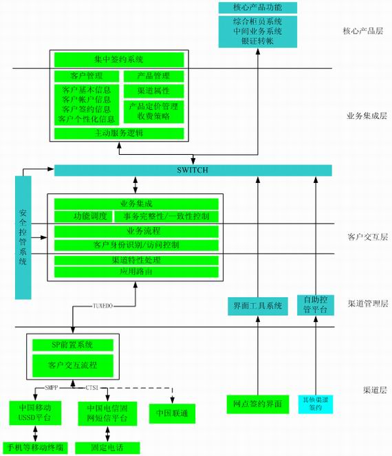 手機(jī)銀行作為一個(gè)實(shí)時(shí)在線、交互性強(qiáng)的交易渠道,首先它是基于銀行帳戶的交易,而不是基于手機(jī)話費(fèi)的交易,因此需要客戶將手機(jī)和其銀行帳戶對(duì)應(yīng)綁定;其次,一方面銀行將有大量金融產(chǎn)品通過(guò)該渠道發(fā)布,需要將銀行的金融產(chǎn)品解釋成手機(jī)銀行渠道的業(yè)務(wù)流程;另一方面,由于其貼近客戶的特定,而且由于手機(jī)這種移動(dòng)終端的界面表達(dá)能力的限制,不可能把所有的功能一次性全部展示在客戶面前,需要為不同客戶提供不同的定制服務(wù)。 最后,手機(jī)銀行系統(tǒng)需要支持多通信服務(wù)提供商和多接入技術(shù)。