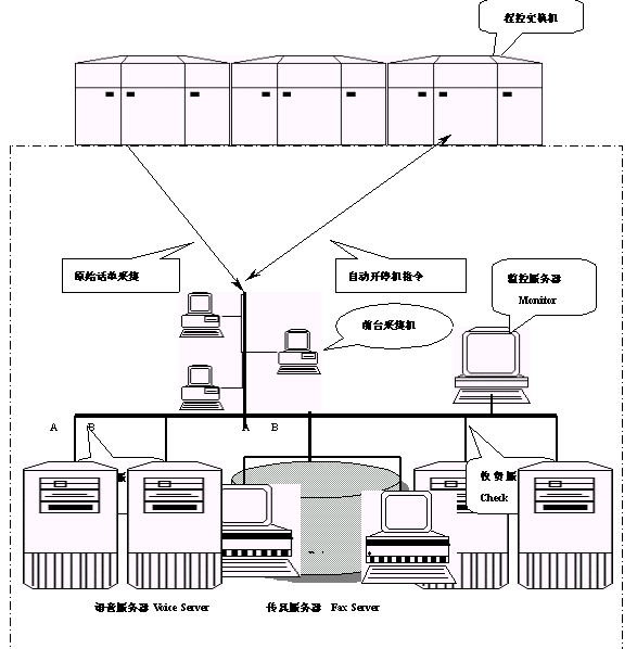 本系統(tǒng)可以分為:話單采集傳輸子系統(tǒng)、計費(fèi)帳務(wù)處理子系統(tǒng)、收費(fèi)服務(wù)子系統(tǒng)、語音查詢充值子系統(tǒng)、自動開停機(jī)子系統(tǒng)和監(jiān)控服務(wù)子系統(tǒng)六個模塊。