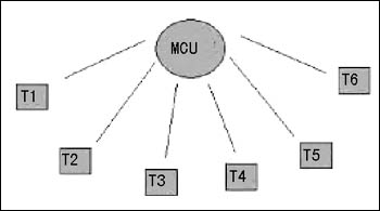 就H.323來(lái)講,企業(yè)存在ADSL、電信專(zhuān)線(xiàn)、衛(wèi)星網(wǎng)絡(luò)等多種選擇。H.323基于IP網(wǎng)絡(luò),IP網(wǎng)絡(luò)雖然是總線(xiàn)型的網(wǎng)絡(luò),但從H.323視頻會(huì)議系統(tǒng)組網(wǎng)來(lái)說(shuō),依舊同H.320視頻會(huì)議系統(tǒng)一樣,是星型網(wǎng)絡(luò),如圖所示,所有的終端數(shù)據(jù)都匯集到MCU處。這樣對(duì)視頻會(huì)議系統(tǒng)組網(wǎng)就提出了要求,如果MCU以下共有6個(gè)終端,每個(gè)中端以B的帶寬開(kāi)會(huì),那么各個(gè)終端處的帶寬要求為B,MCU處的帶寬要求就為6B。