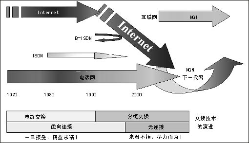 傳統(tǒng)電信網(wǎng)和互聯(lián)網(wǎng)都面臨著挑戰(zhàn),基于電話業(yè)務(wù)設(shè)計(jì)的電路交換網(wǎng)不能靈活適應(yīng)帶寬各異的數(shù)據(jù)業(yè)務(wù)的發(fā)展。專為數(shù)據(jù)業(yè)務(wù)設(shè)計(jì)的互聯(lián)網(wǎng)則存在著安全性、可管理性、商業(yè)模式等問題的困擾。NGI對(duì)目前電信網(wǎng)的主要盈利業(yè)務(wù)語音的質(zhì)量保證以及對(duì)電信網(wǎng)增長(zhǎng)空間很大的業(yè)務(wù)(移動(dòng))關(guān)注不夠。NGI可能達(dá)到的目標(biāo)不能滿足電信界的需要。因此,在NGI之后ITU和ETSI等提出了更高的目標(biāo)——NGN,這就是NGN的提出背景。信息產(chǎn)業(yè)部電信研究院科技委副主任委員雷震洲認(rèn)為,兩大亮點(diǎn)點(diǎn)燃了NGN:一是數(shù)據(jù)超過語音的信息需求,全球互聯(lián)網(wǎng)用戶目前已逾7億,全世界在網(wǎng)上傳送的以IP為代表的數(shù)據(jù)業(yè)務(wù)量已經(jīng)超過語音業(yè)務(wù)量;二是移動(dòng)超過固定的個(gè)性化需求,全球移動(dòng)用戶已經(jīng)超過13億,近100個(gè)國(guó)家的移動(dòng)用戶數(shù)已經(jīng)超過固定用戶數(shù),我國(guó)在2003年10月移動(dòng)用戶也超過了固定用戶數(shù)。