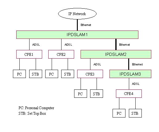 1 Video over ADSL 技術(shù)概述圖1. IPDSLAM設(shè)備所處網(wǎng)絡(luò)結(jié)構(gòu)