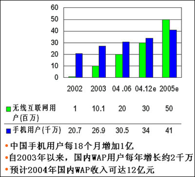 有數(shù)據(jù)顯示,國內(nèi)WAP用戶自2003年來以每年2000萬的速度遞增,預(yù)計(jì)2005年末將有望達(dá)到5000萬,接近國內(nèi)Internet用戶總數(shù)的一半。WAP雖然是一個(gè)充滿了機(jī)會(huì)的市場,但國內(nèi)現(xiàn)有的WAP站點(diǎn)資源很難滿足WAP用戶的需求也是事實(shí)。劉斌認(rèn)為,2005年將是對(duì)WAP非常關(guān)鍵的一年,在這一年里,WAP搜索將有望成為WAP平臺(tái)上的“殺手級(jí)應(yīng)用”,并最終催熟國內(nèi)各種相關(guān)的WAP應(yīng)用。當(dāng)然,這有一個(gè)前提,那就是中文WAP網(wǎng)絡(luò)資源必須在今年得到極大豐富。