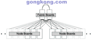 全網(wǎng)狀背板提供slot與slot之間最大限度的連接。所有的slot都是相同的連接方式,并且可以支持交換板卡(Switch boards)或者節(jié)點板卡(Node