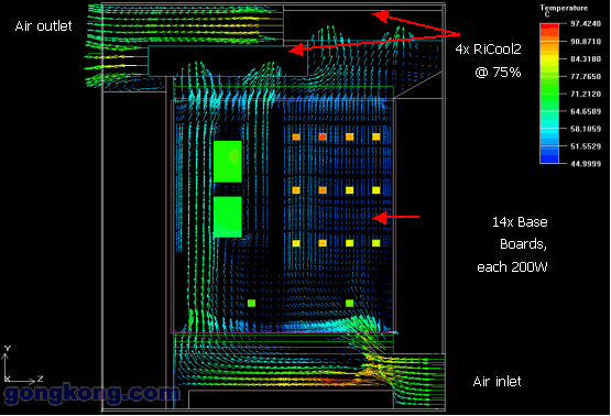 根據(jù)13U ATCA Shelf,威圖公司做了熱量以及風量的模擬分析: