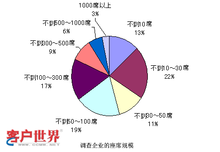 那么和剛才雜志社調(diào)查的結(jié)果是一樣的。這個數(shù)字又是政府方面調(diào)查的結(jié)果,他們調(diào)查的很細(xì),對很小規(guī)模的,比如說1-4人的呼叫中心都進行了調(diào)查,并且看到這種小規(guī)模的呼叫中心還占有很大的比例?梢钥吹剑10人以下的呼叫中心可能在這個結(jié)果里面占了基本上高于50%,所以可能得到一個結(jié)論,就是在日本小型的呼叫中心非常多。