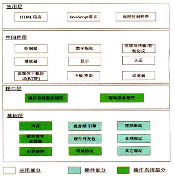 下一步工作應該側(cè)重于以下幾個方面:制定機頂盒與業(yè)務平臺間接口規(guī)范,以及接口標準的處理模式;根據(jù)業(yè)務發(fā)展,不斷補充細化對終端設備技術(shù)要求;明確機頂盒的體系架構(gòu),以及軟/硬件架構(gòu)分層定義;確定機頂盒安全架構(gòu)與機制,包括對數(shù)字版權(quán)DRM的支持。